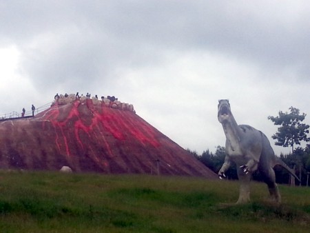 con maquetas a tamaño real de todo tipo de dinosaurios y especies de ese