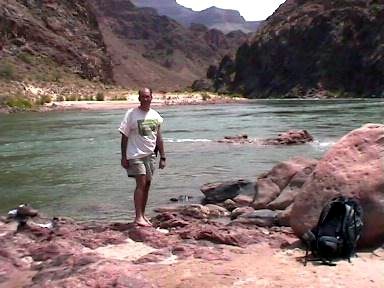 refrescándome los pies en el río colorado, y es que nos costará más de cuatro horas el