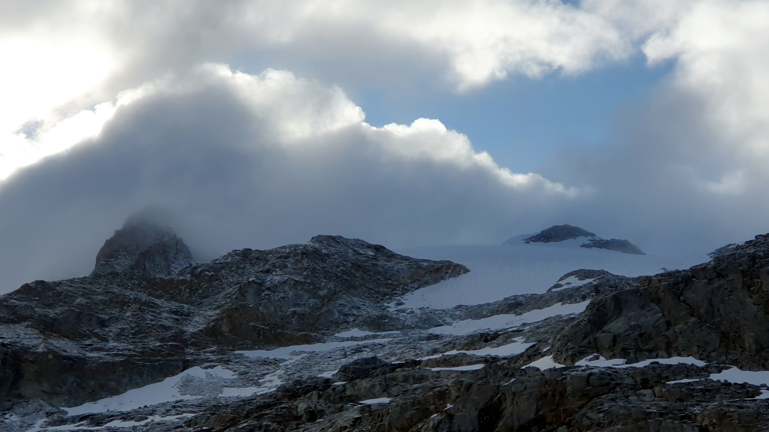 Alrededor del refugio el tiempo se ha calmado, pero arriba, sigue totalmente cubierto y por tanto y para no perder el