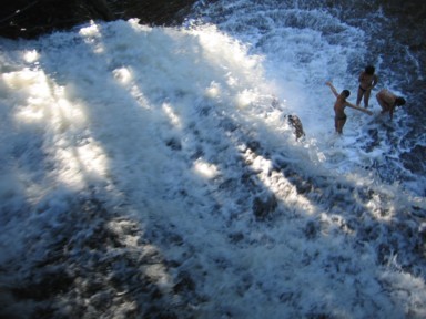 lugar tranquilo con su pequeño río y varias cascadas sin complicaciones, en las