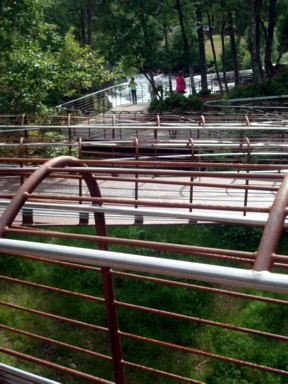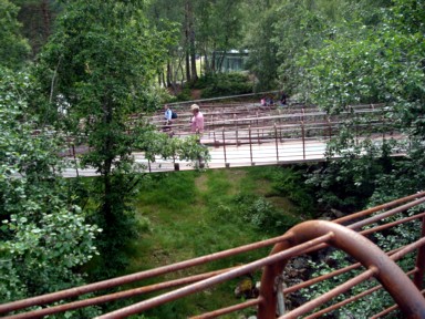 que han puesto un sistema de pasarelas y puentes por encima del río y las