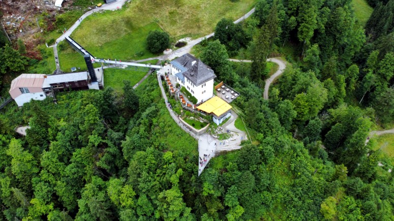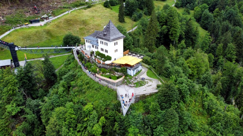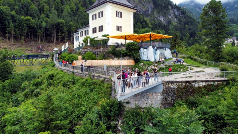 Pues si, hay una plataforma de observación a 360 metros sobre Hallstatt. Se puede llegar a ella