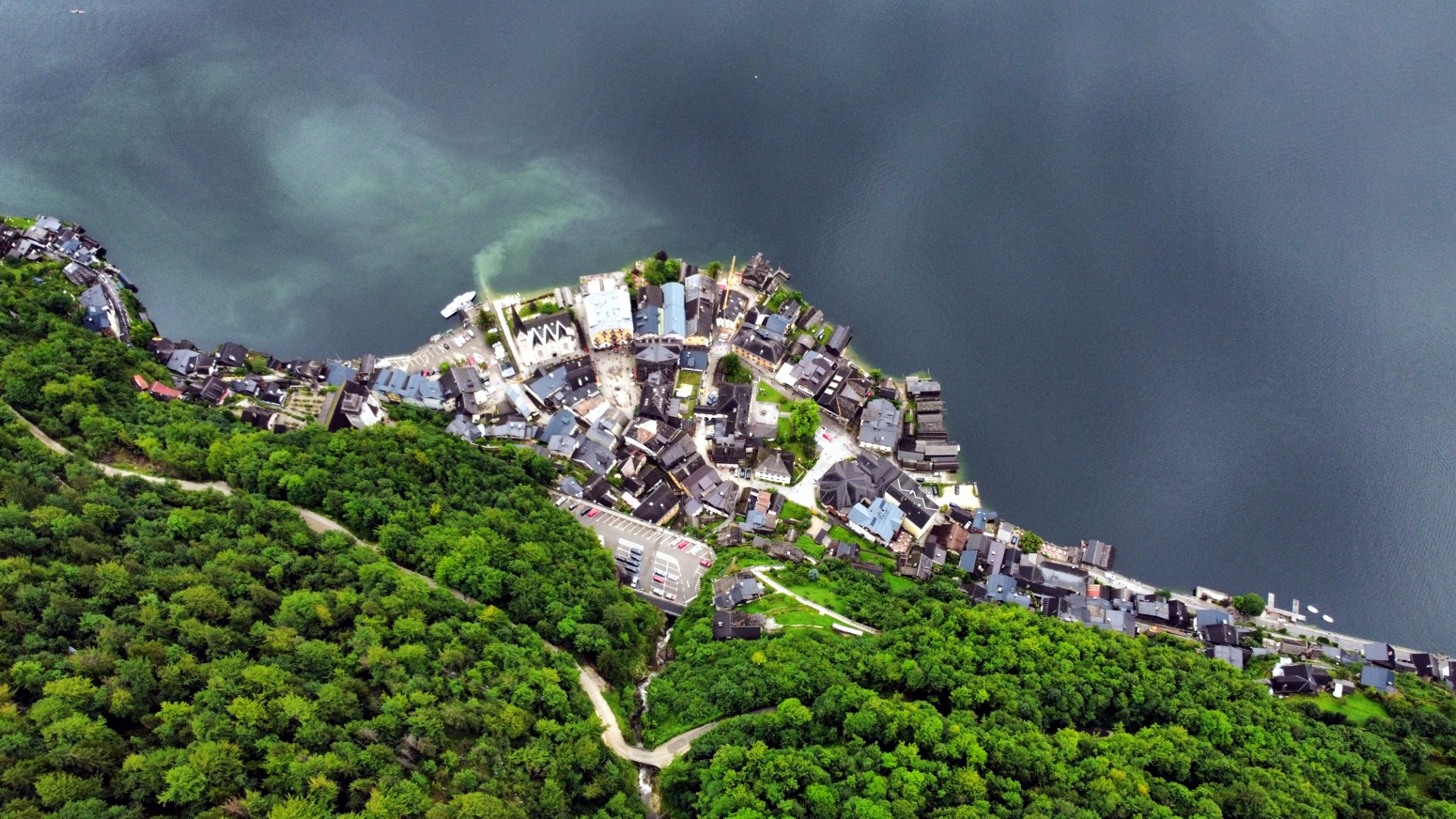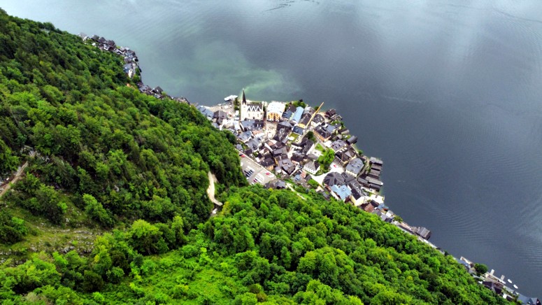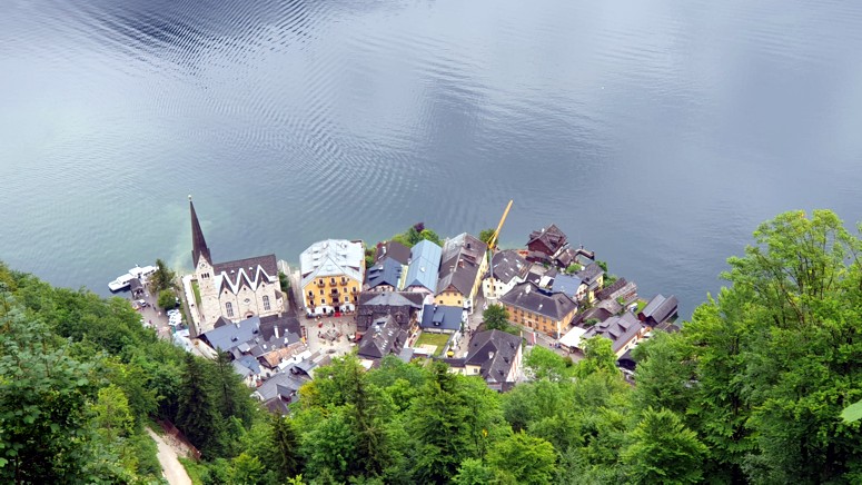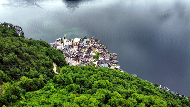 vacío a pesar de sus 200 toneladas de peso y que permite tomar unas aéreas fotos de Hallstatt.