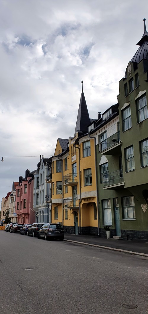 junto a sus casas de tonos pastel muy llamativos, se trata de la calle Huvilakatu.