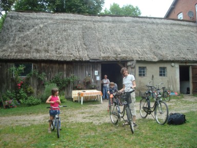 por bicicletas para llenar el establo (foto 2). Salimos de la granja ya con