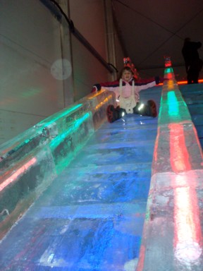 de barras de hielo (foto 9), o deslizándose por un largo tobogán congelado (foto