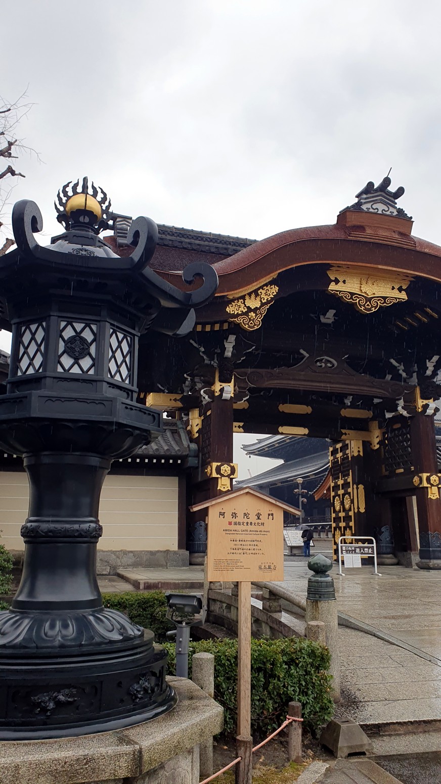 Las puertas de Higashi Honganji también son de mucho interés: La Amida-do-mon, o Amida Hall Gate es el punto de entrada más al sur. La puerta aquí era originalmente parte del castillo de Fushimi, pero fue dada al templo por Tokugawa Ieyasu