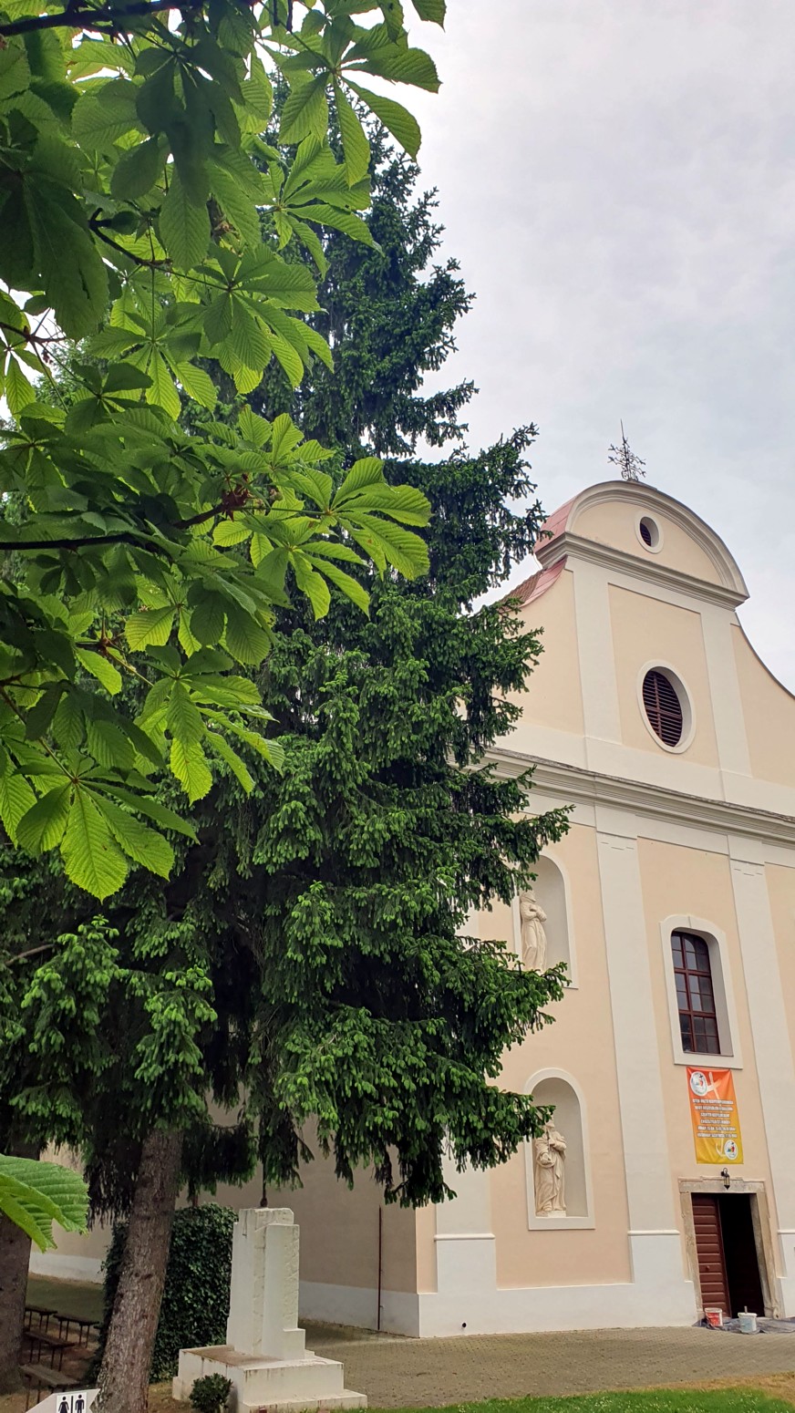 El camino lo empezaremos en la iglesia de Homokkomárom con su bonito y vistoso camino de entrada flanqueado de reales
