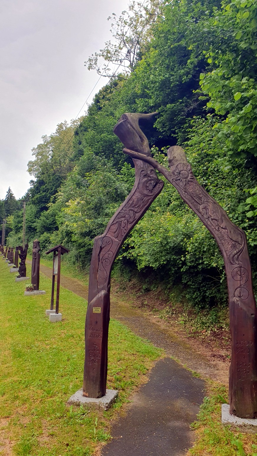 estatuas de madera. Luego cruzaremos varias veces en el bosque el Ferrocarril Forestal Estatal de Csömödér que
