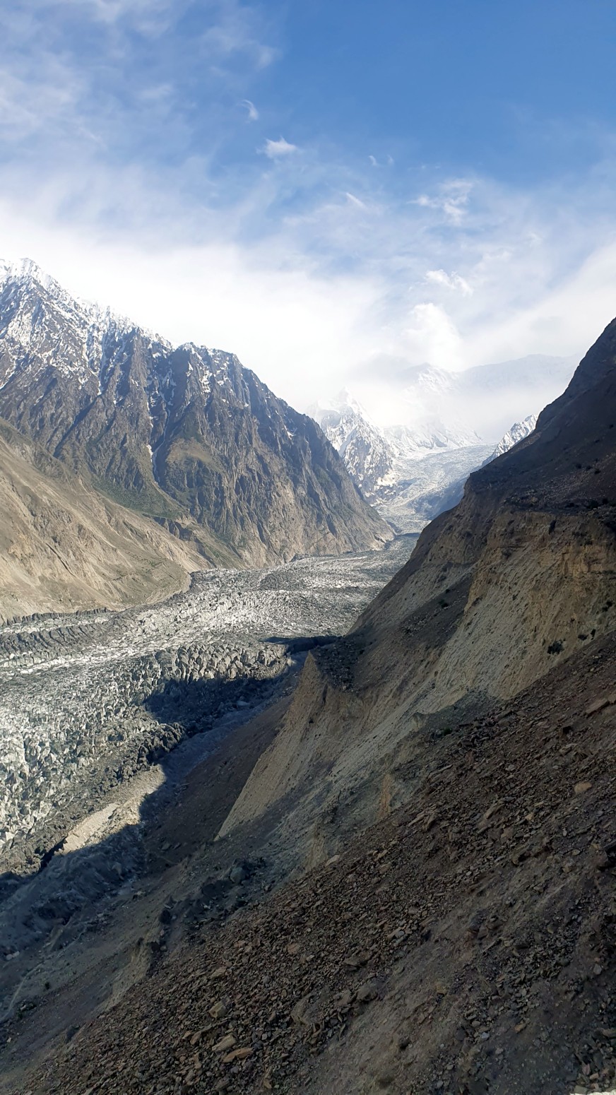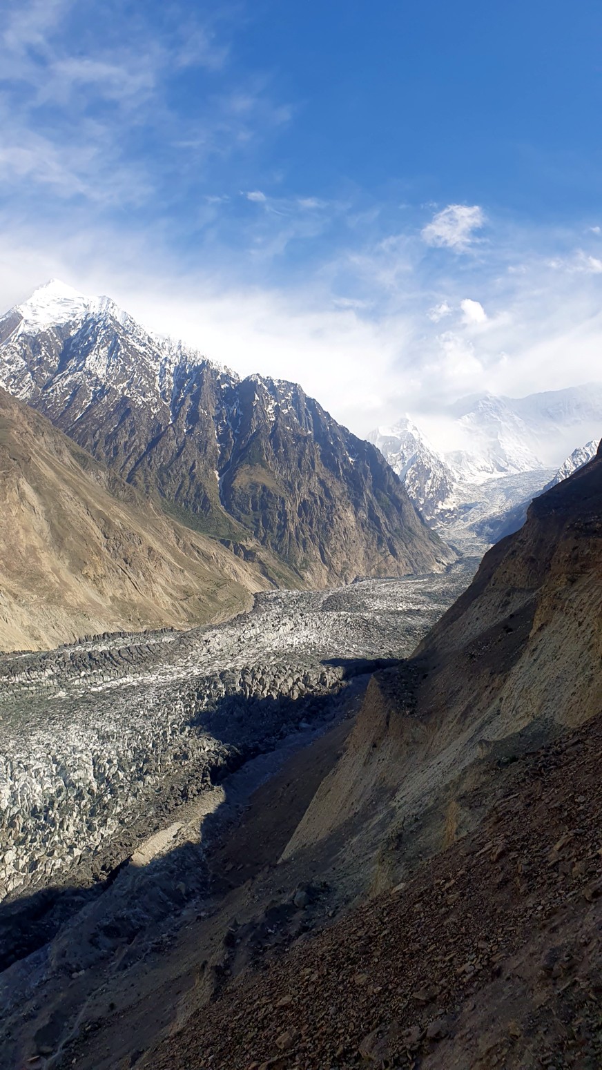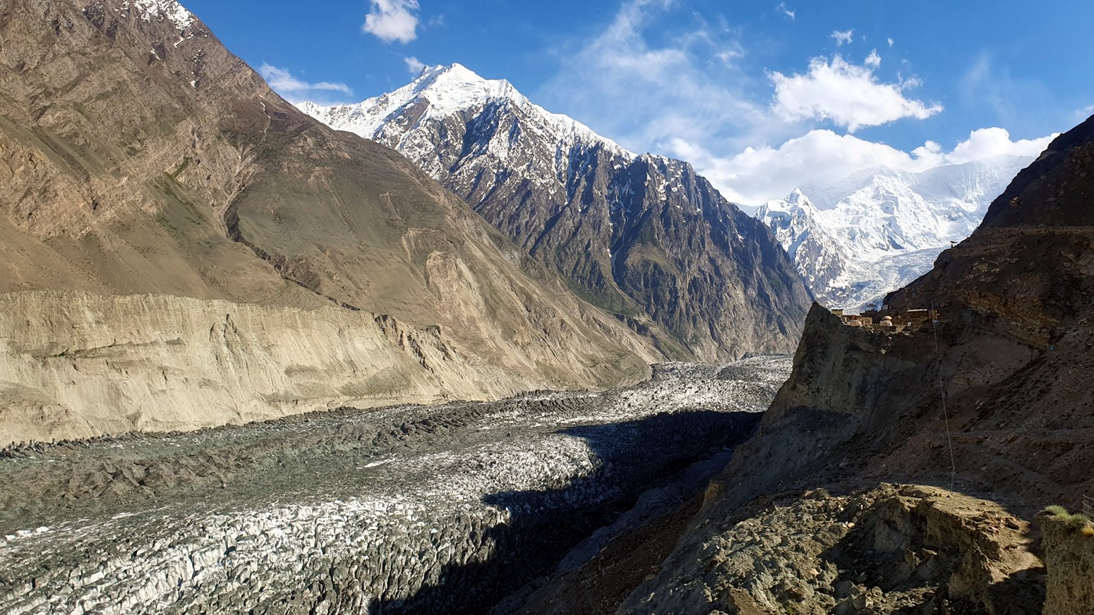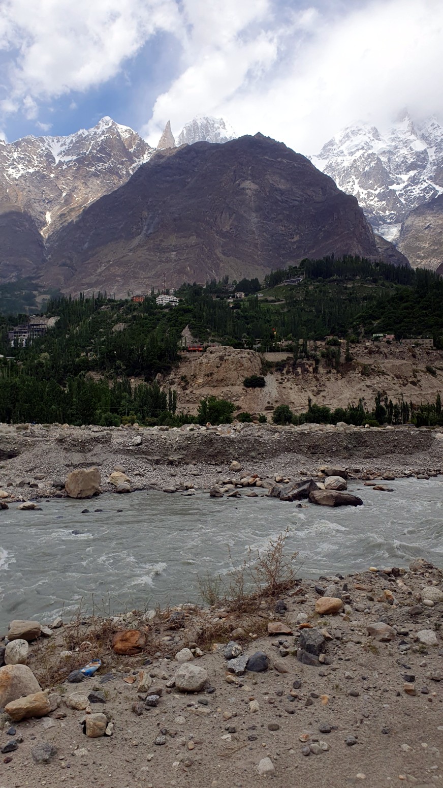cubiertos de glaciares conocidos como la cordillera Hispar Muztagh. Toda la población que reside en este valle habla en lengua burushaski.