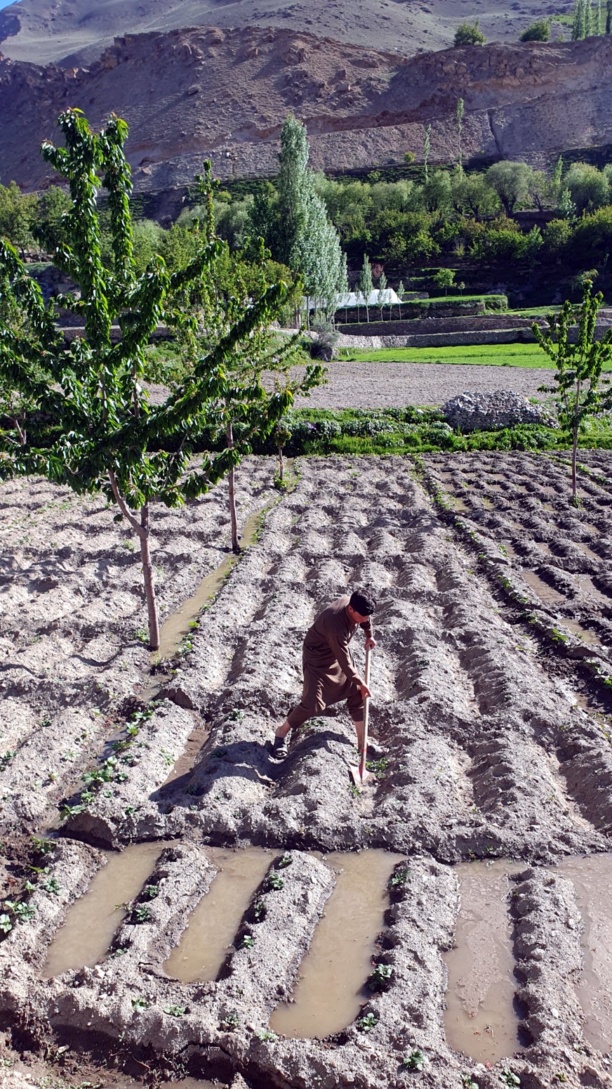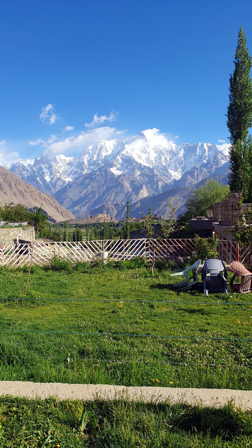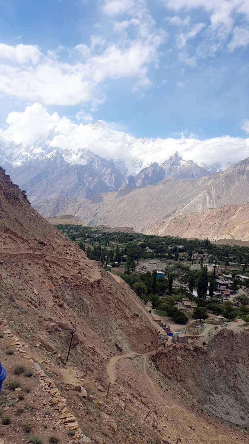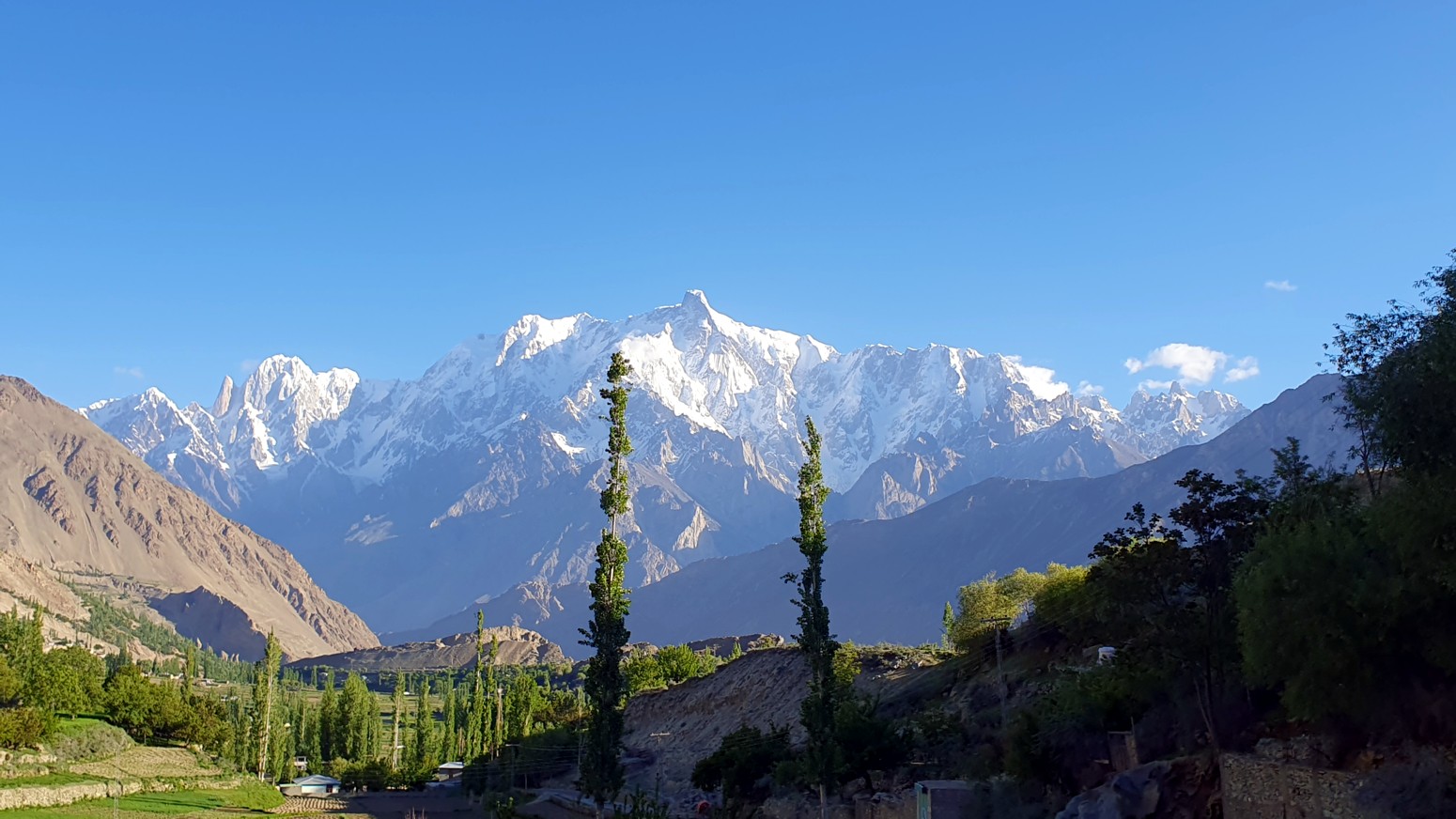 cubiertos de glaciares conocidos como la cordillera Hispar Muztagh. Toda la población que reside en este valle habla en lengua burushaski.