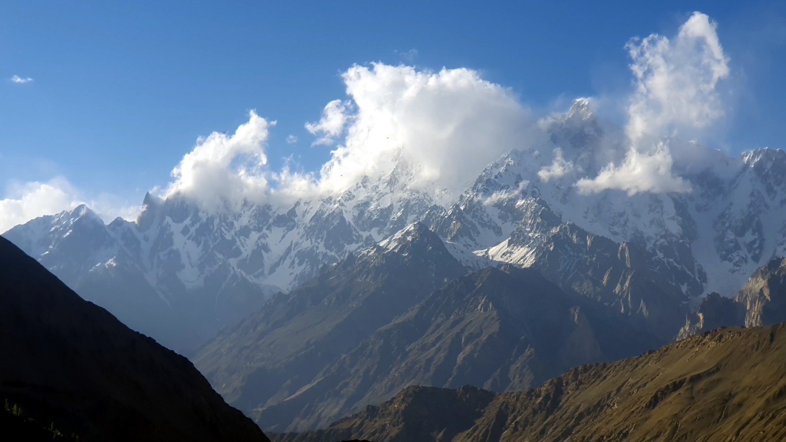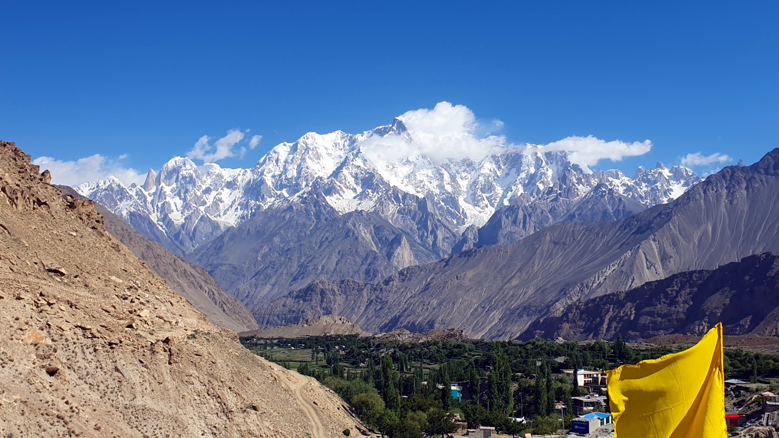 , Rush Peak y Miar Peak (7257m), mientras que las otras series de montañas ven desde Rush Peak como K2, Passu Peak, Diran Peak y Rakaposhi.