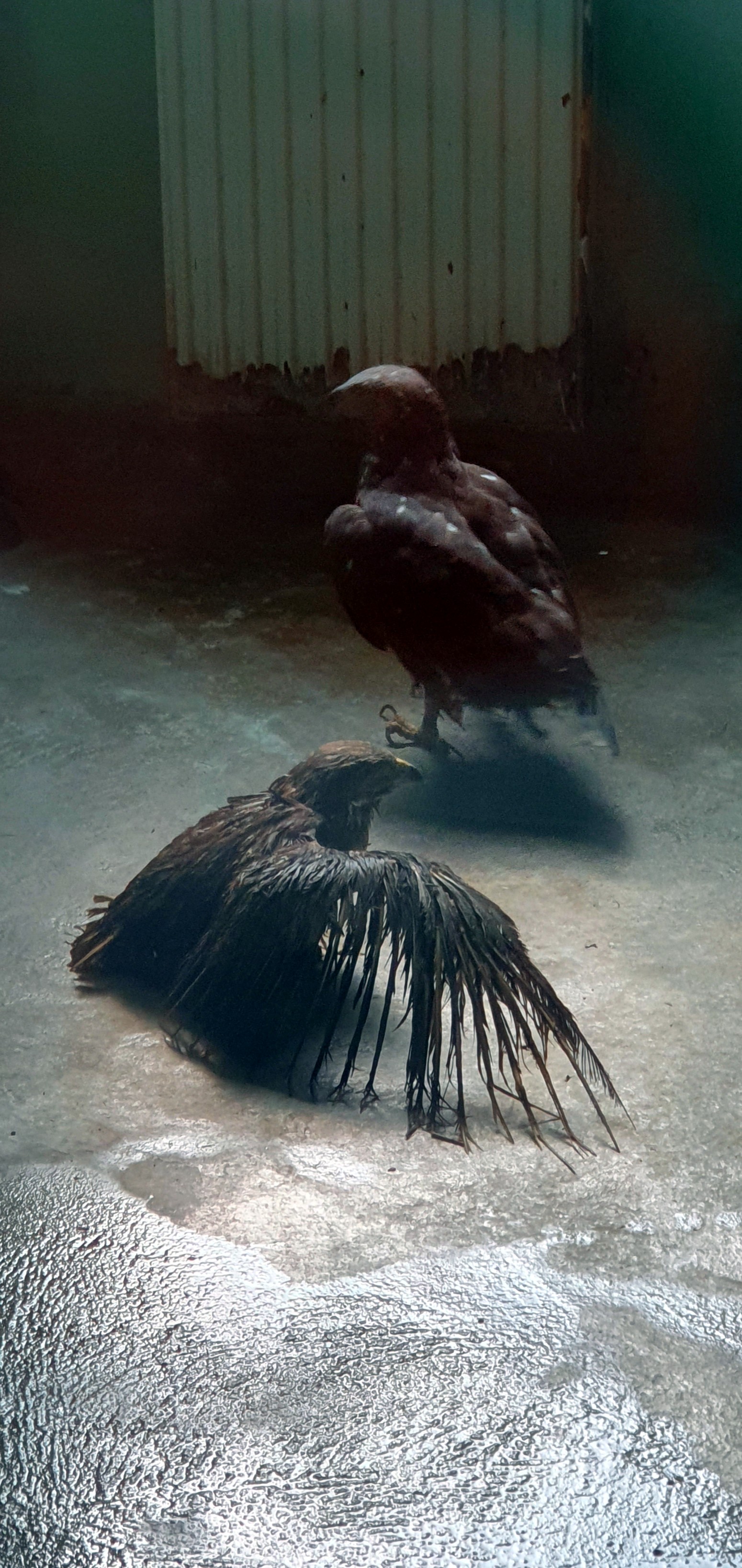 Y después un recorrido por todas las jaulas de los animales heridos, algunos realmente en un estado lamentable y casi sin plumas y