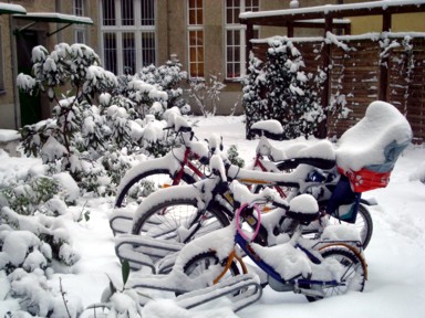 Y un día, nuestro patio amaneció blanco, nuestras bicis