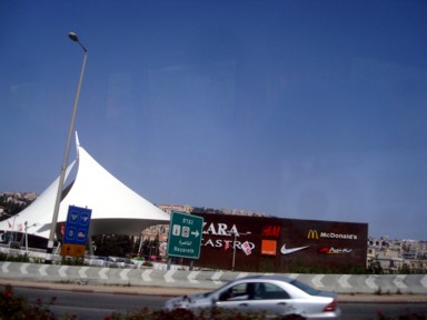 el pueblo en el que Jesús creció. A la entrada anuncios de Zara y McDonalds