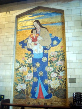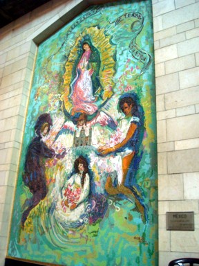 y las pinturas que la decoran y que son vírgenes de distintas partes del mundo,