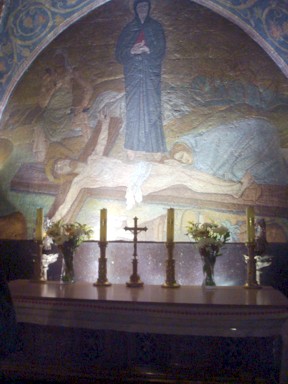 La estación XIV del Vía Cricis (sepultura y resurrección de Jesús), se encuentra