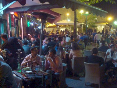 muchos pubs con música en directo, con pantallas gigantes de televisión para ver