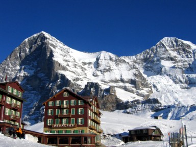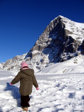 al pié de la temible cara norte del Eiger, a la que nunca termina de darle el