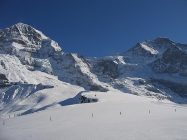Desde aquí la vista sin querer siempre se va hacia la cara norte del Eiger (foto