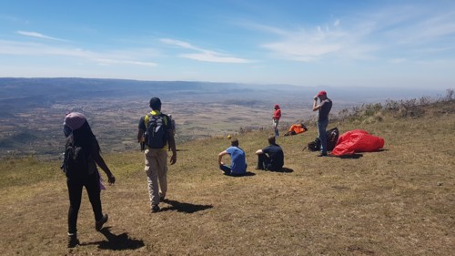 zona de vuelo de parapente de Kijabe, aunque el día de esta ascensión para fastidiar los vientos no eran propicios, y soplaban de