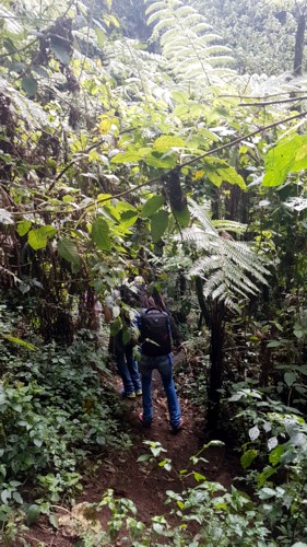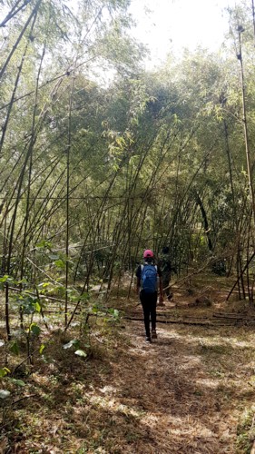 en un bosque de bambú, por el que iremos descendiendo hasta llegar a un frondoso bosque, en el que buscaremos en río y su genial