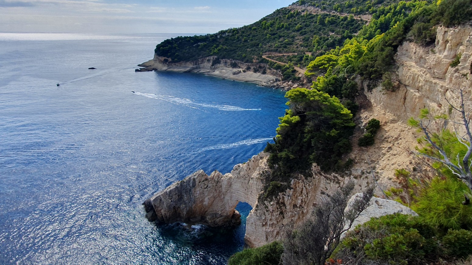 acantilado sobre el Cabo Marathia y podemos contemplar el arco de roca desde una vista diferente que desde un barco...