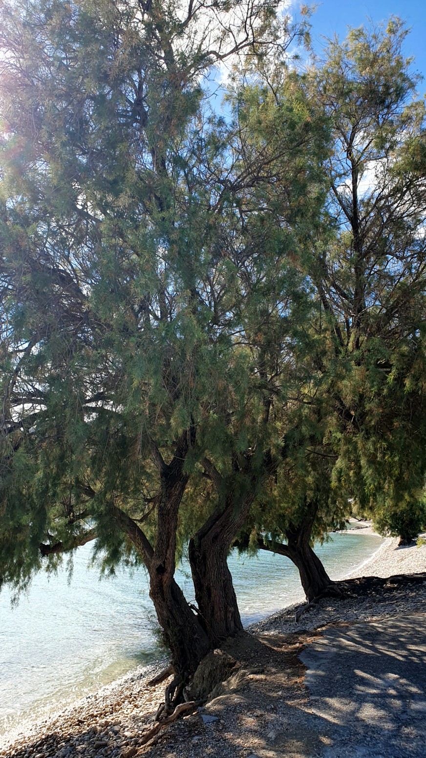 También hay tumbonas disponibles, pero hay mucha sombra natural proporcionada por los árboles que bordean los 300 m de la playa.