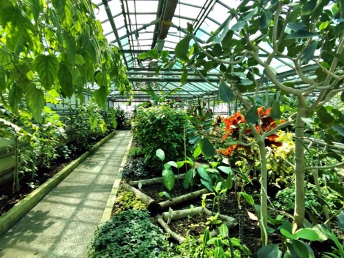 Es un jardín paisajístico, que imita a la naturaleza y su colección de invernaderos fue reconocida con varios diplomas en