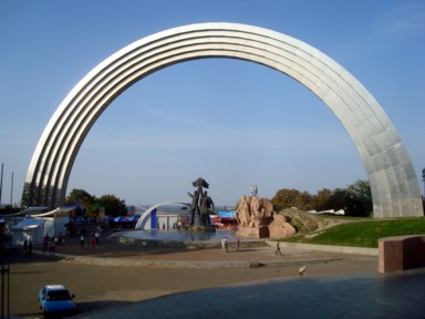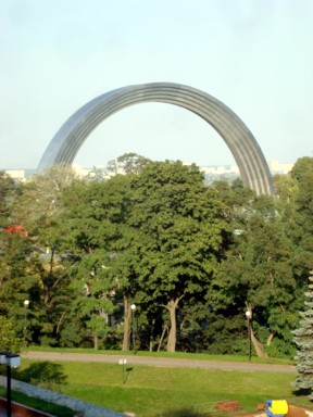en el Parque Khreschaty. Es un estructura con forma de arco de 50 metros de