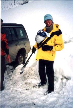 atrás y cambiar de sentido el coche, quedamos atrapados en la nieve, no hubo manera de