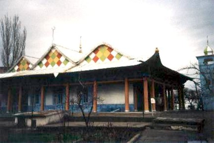 Pero la más curiosa construcción, es la Mezquita Dungan (foto 2), pertenece a un periodo pre-islámico-budista, lógicamente el minarete que existía, los rusos se encargaron de