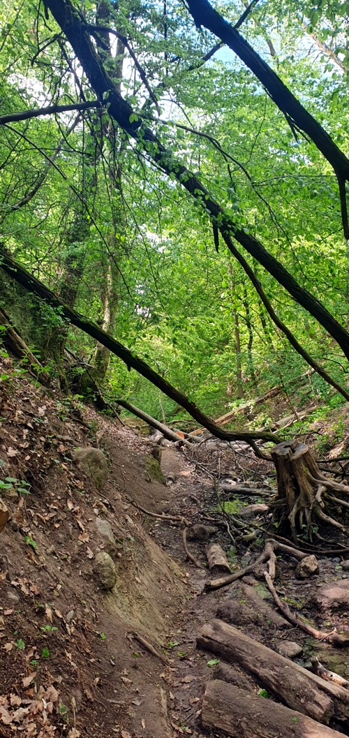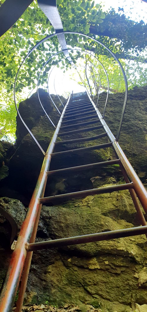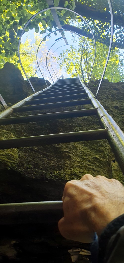 El camino nunca es difícil, e incluso la escalera que supera el barranco se ve bastante segura, y por el contrario todo el