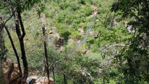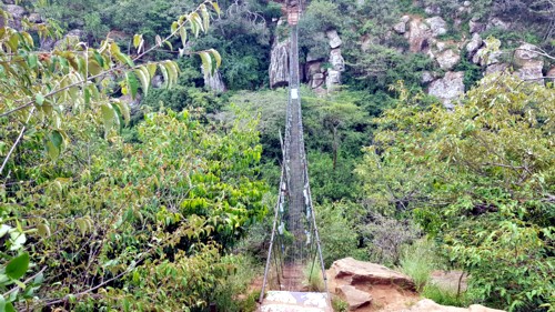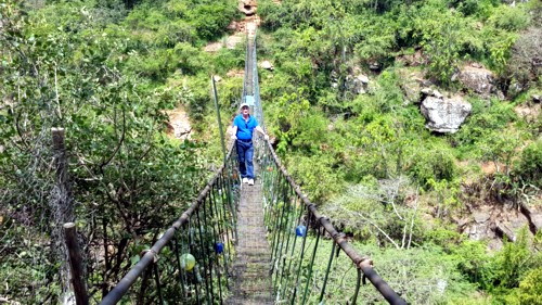 Se accede de la manera más espectacular posible, a través de un estrecho puente colgante, que si