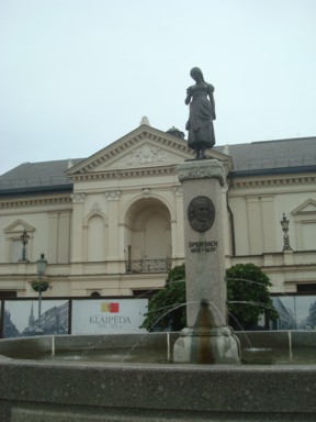 poeta alemán nacido en Klaipeda, aunque el monumento es una copia del original