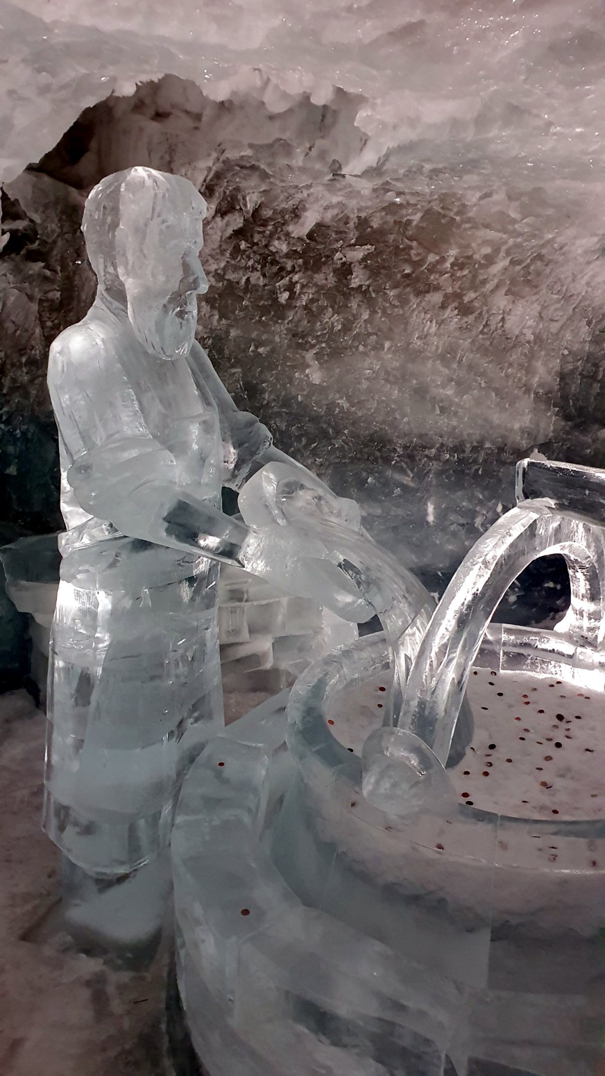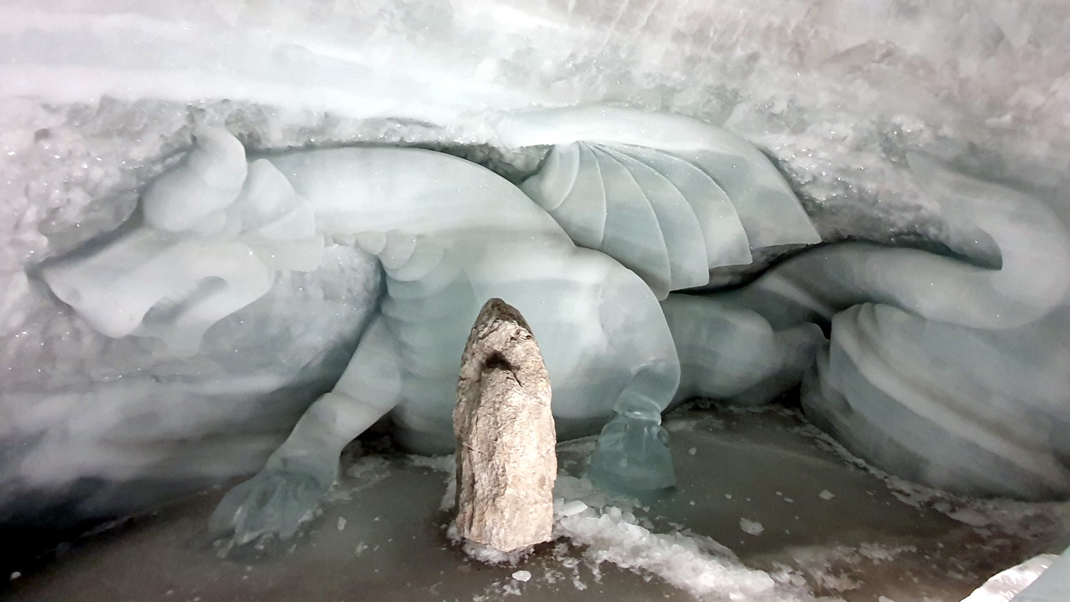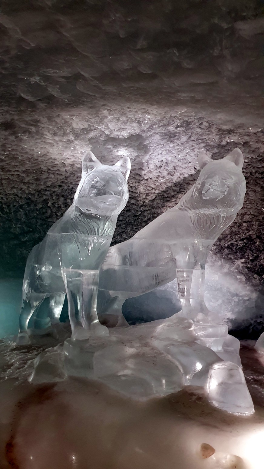 También y aprovechando que estamos en un glaciar, pues han tallado unos recorridos por el hielo y figuras, toboganes y otras