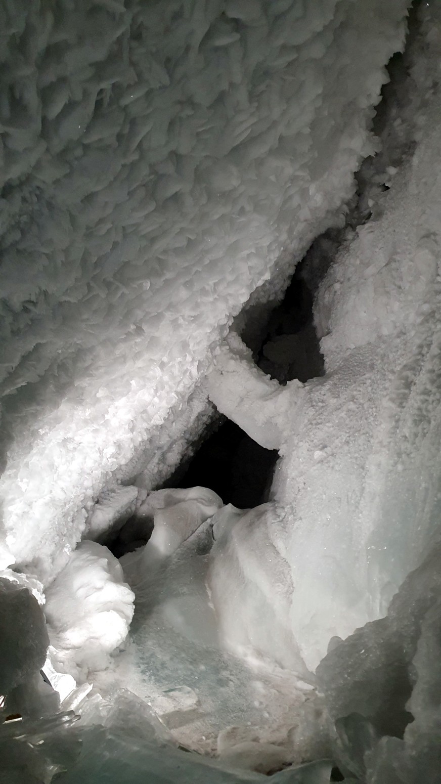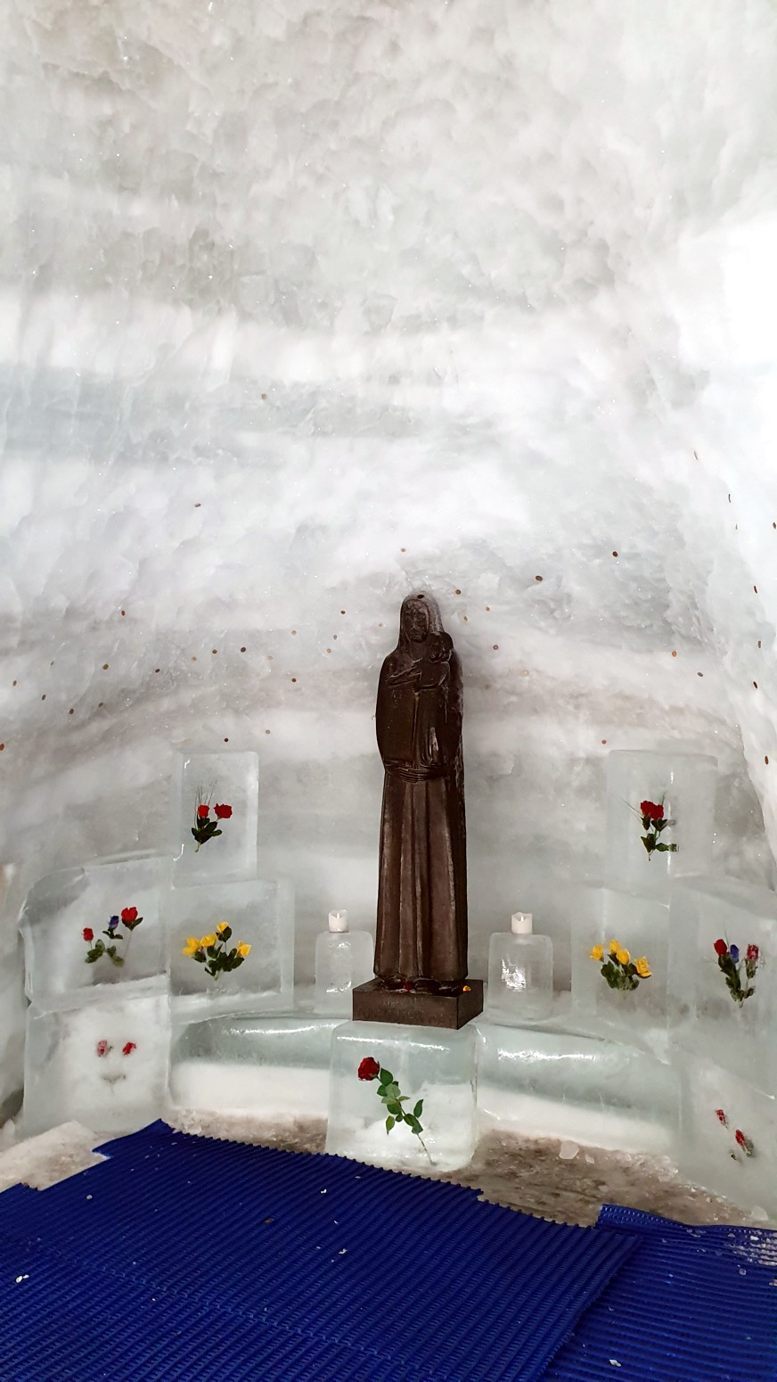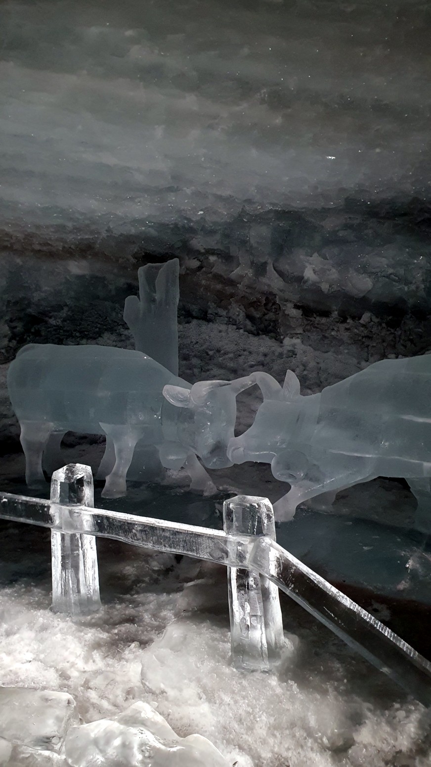 También y aprovechando que estamos en un glaciar, pues han tallado unos recorridos por el hielo y figuras, toboganes y otras