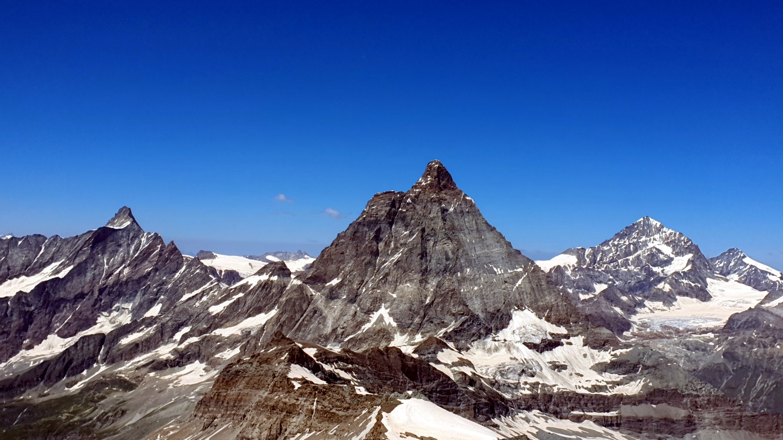 gigantes cimas de Italia, Francia y Suiza. Mont Blanc y Cervino incluidos que parece que están a solo un paso.