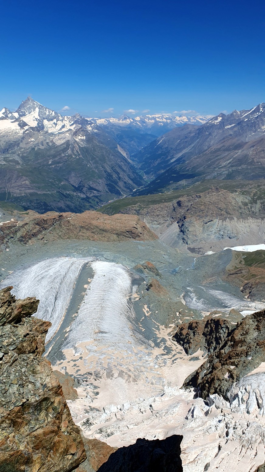vistas hacia el valle de Zermatt, sin duda una tremenda atracción sea cual sea el motivo de tu visita: turismo, montaña, ski.