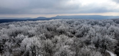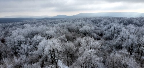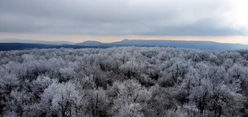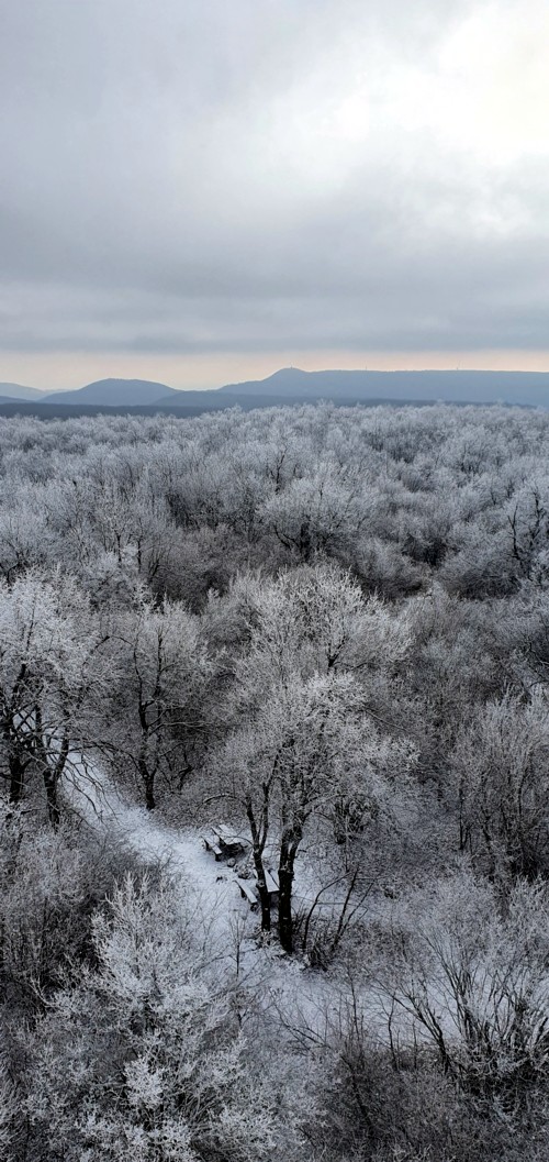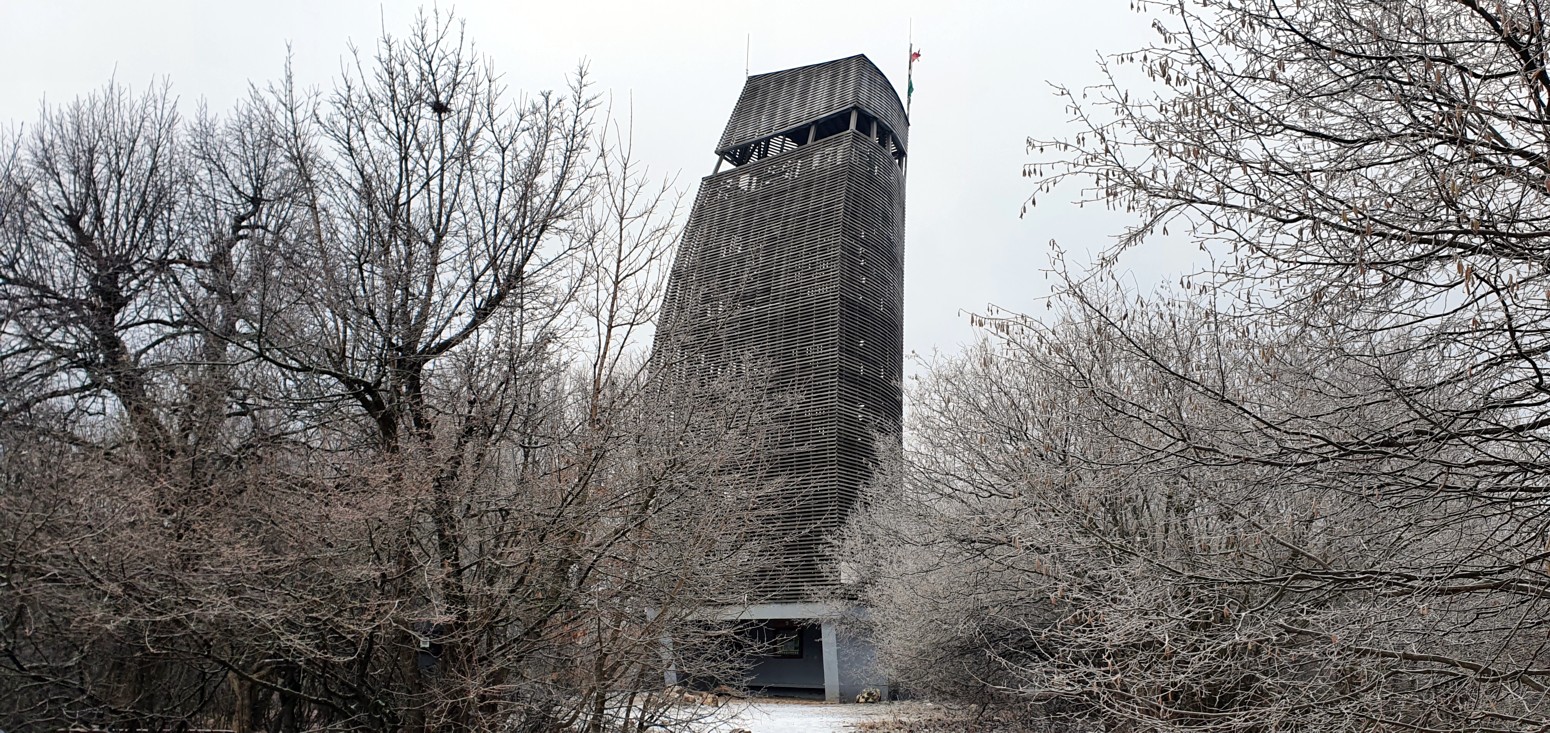 la torre-mirador desde donde se pueden toma espectaculares fotografías, como nosotros al encontrarnos todo en bosque congelado...