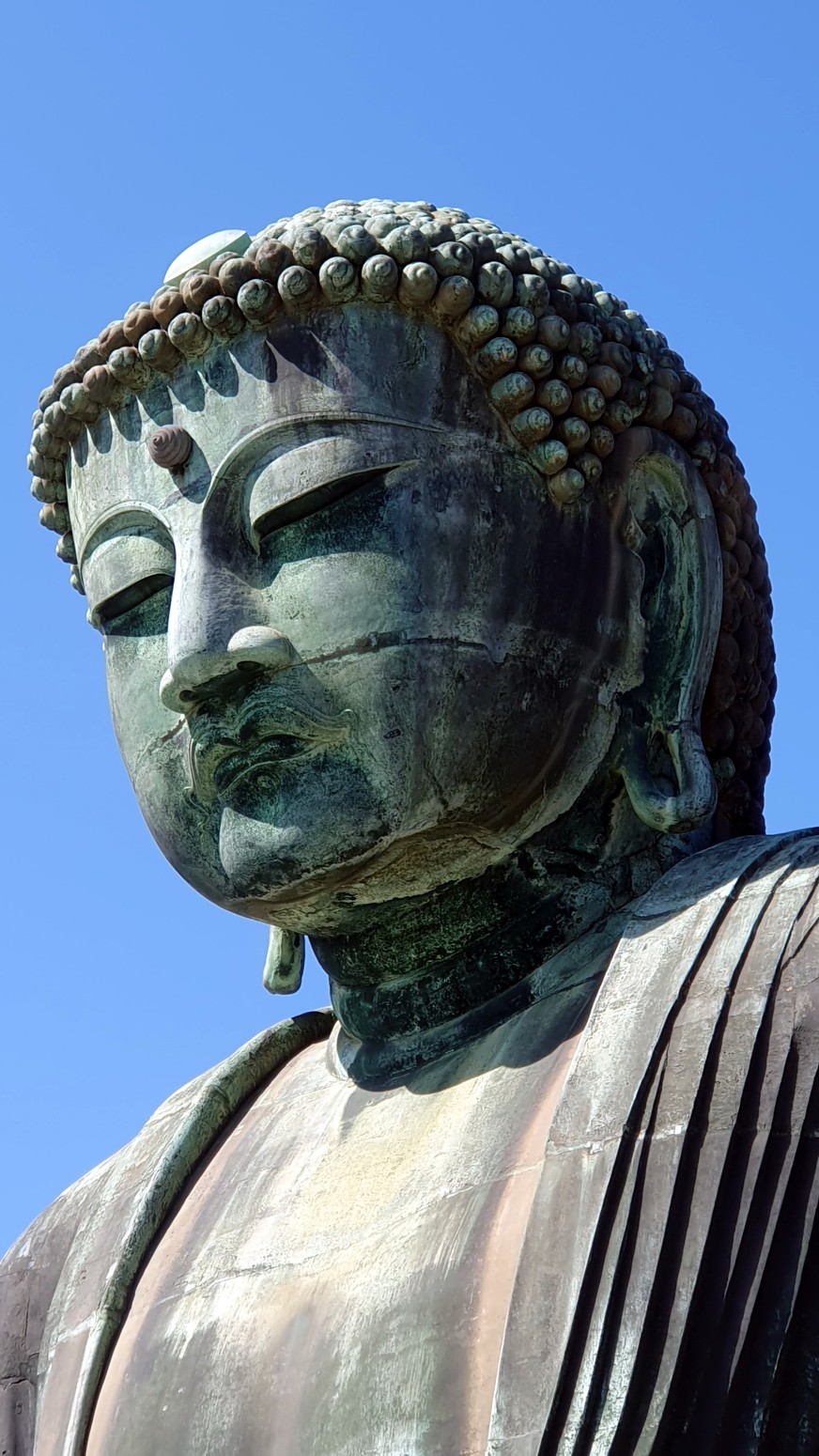 El Gran Buda de Kamakura está construido en bronce, tiene una altura de 13,35 metros y se encuentra en la posición de sentado sobre una base elevada a unos