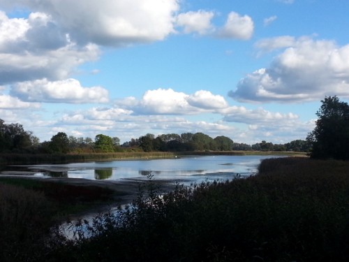 pequeños lagos de Linum con paneles informativos y mapas de los