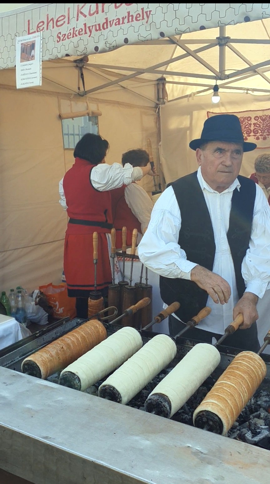 El postre típico húngaro es el Kürtoskalács, tiene su origen en Transilvania (antes territorio