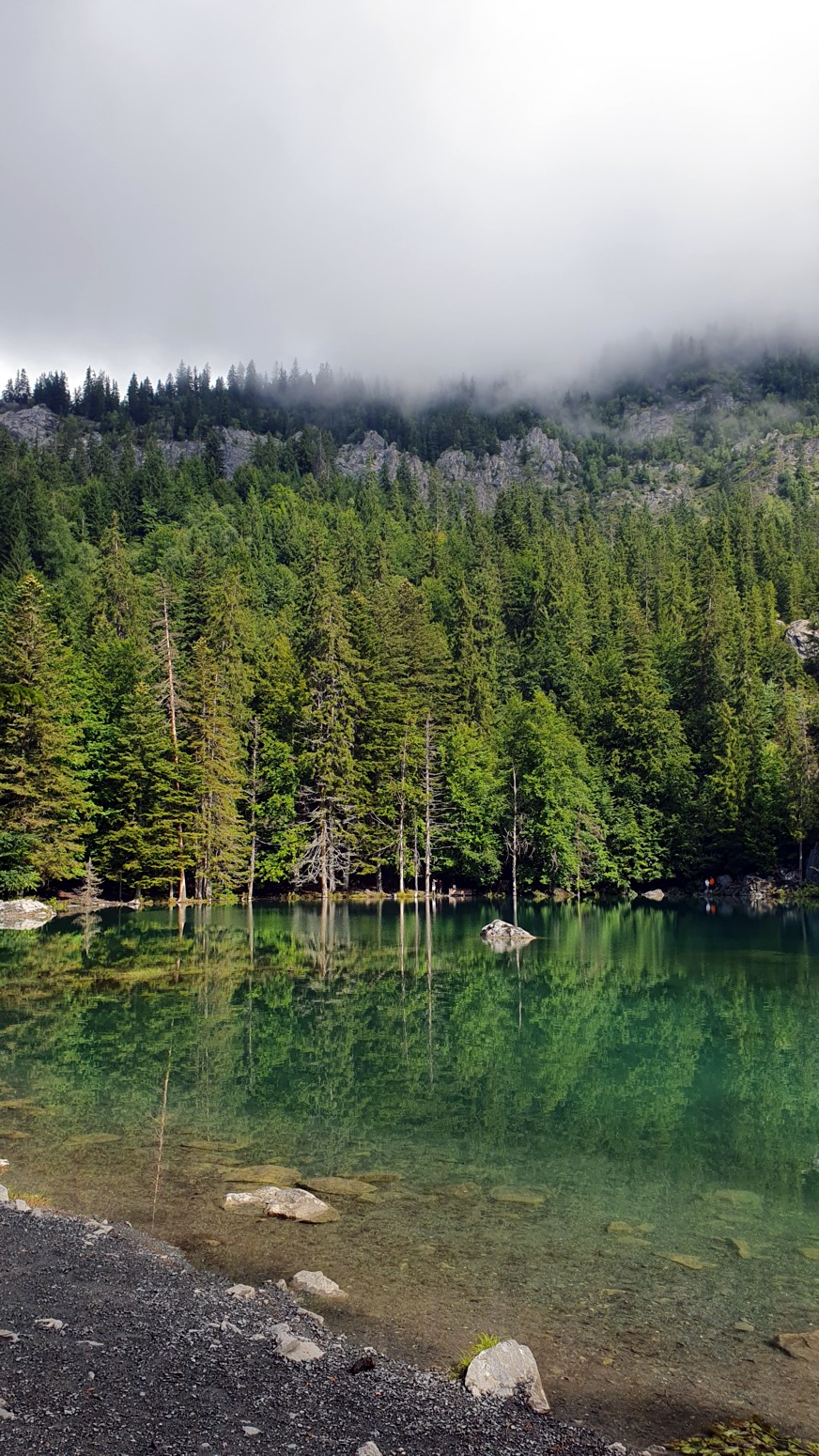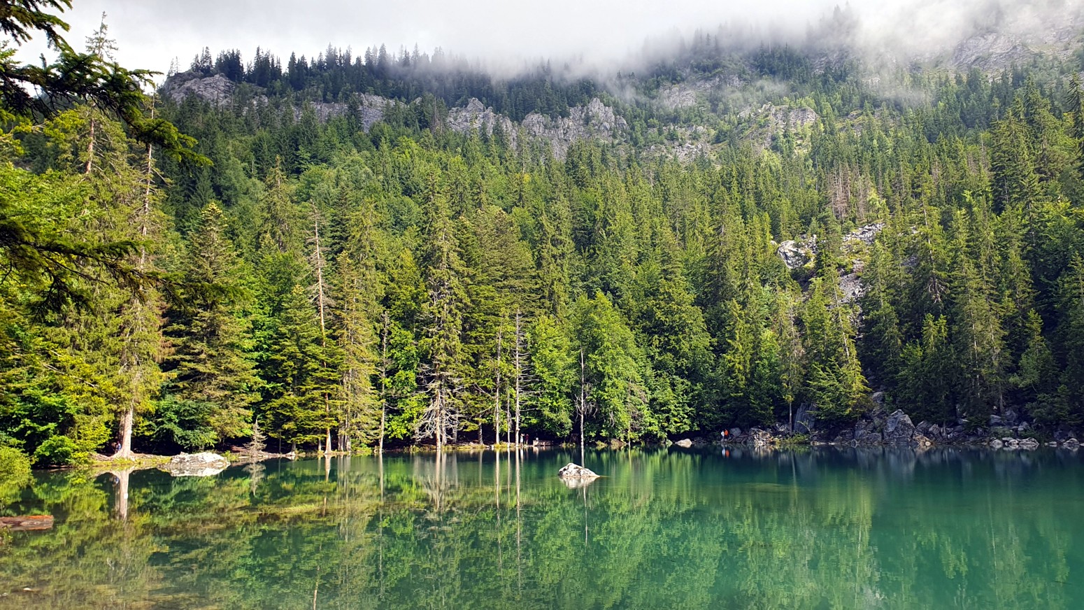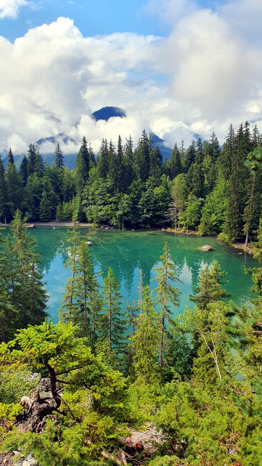 El Lago Verde ofrece aguas esmeralda de rara transparencia, bordeadas de abetos
