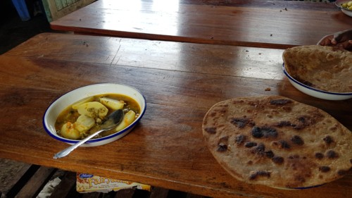 Se cocina en el suelo con fuego de leña. Se come lo que se produce, patatas, garbanzos, legumbre, y