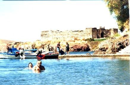 estupendas playas como en esta de Sigri al lado de su pequeña fortaleza.