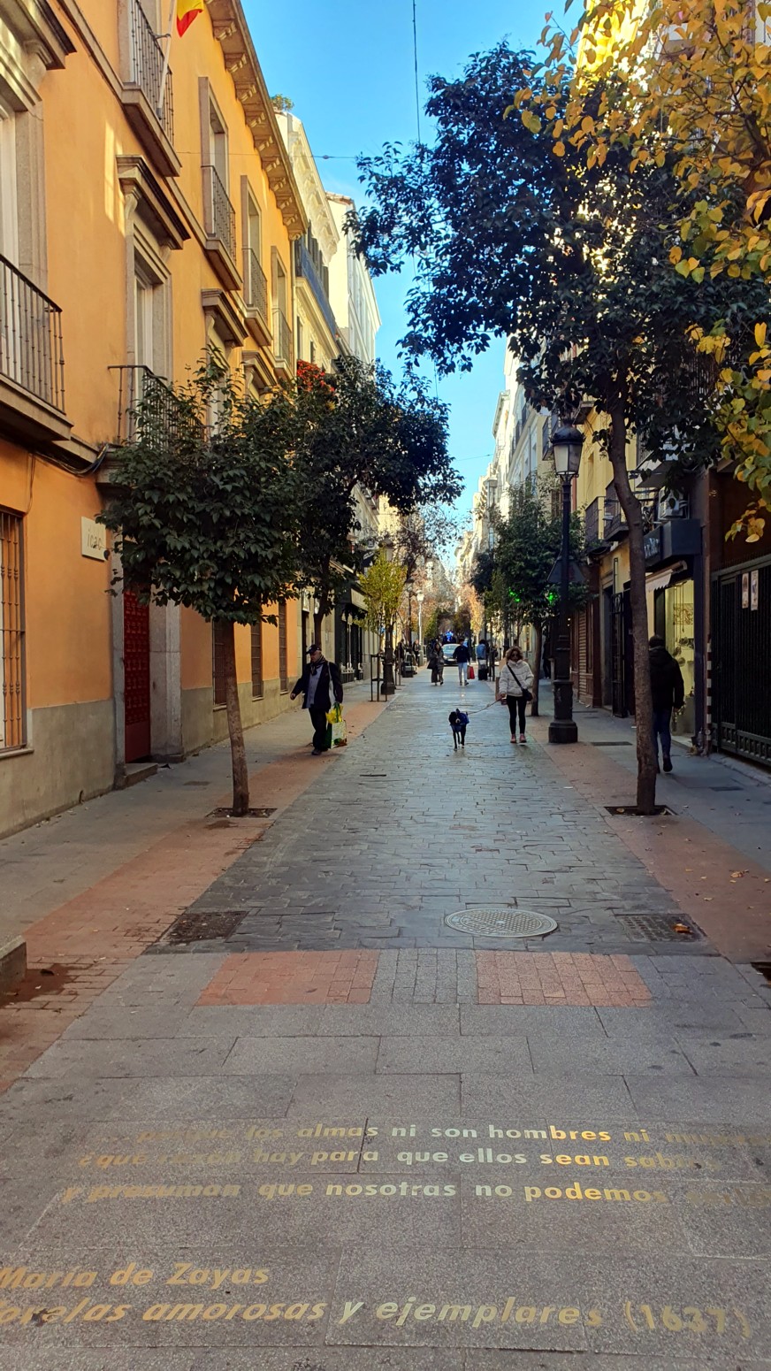 nos dirigiremos por la calle de las Huertas esa donde hay varias citas escritas en el piso la calle de diferentes autores como Cervantes,