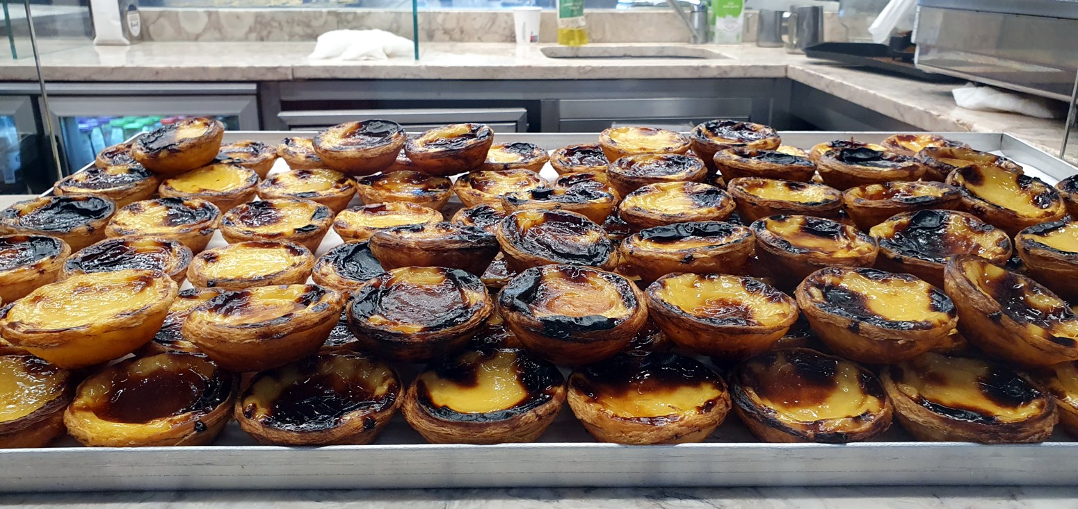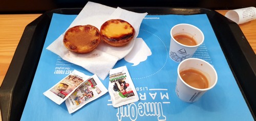 pastel típico de Bacalao, un café, con las típicas pastas de Belem, etc, etc.