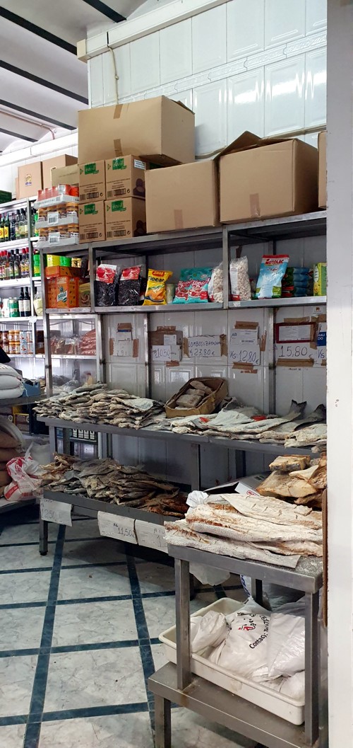 pescados frescos, etc. Pero la otra mitad es una especie de feria de comitas portuguesas pero de