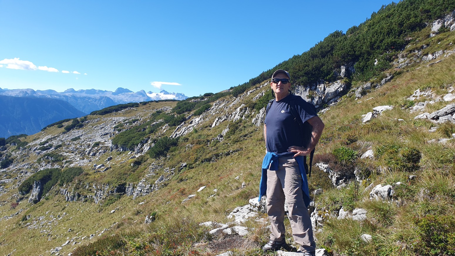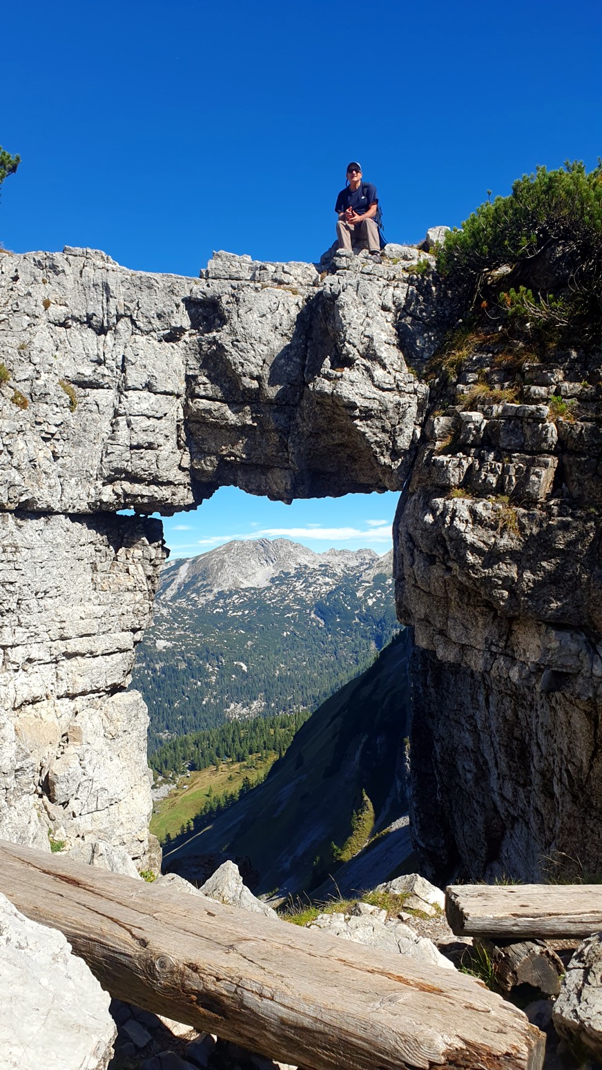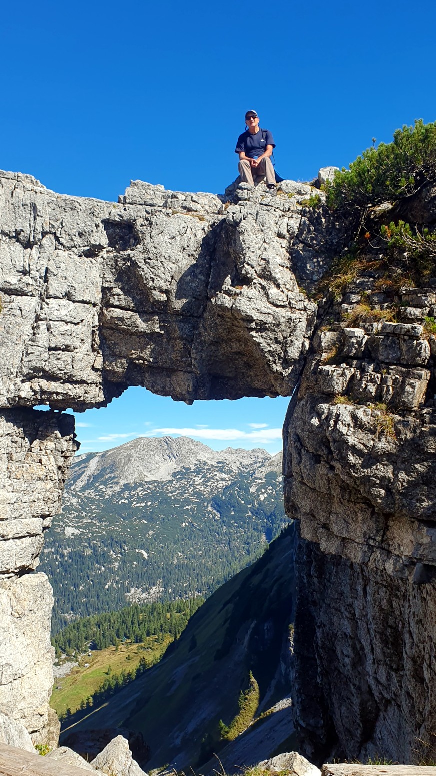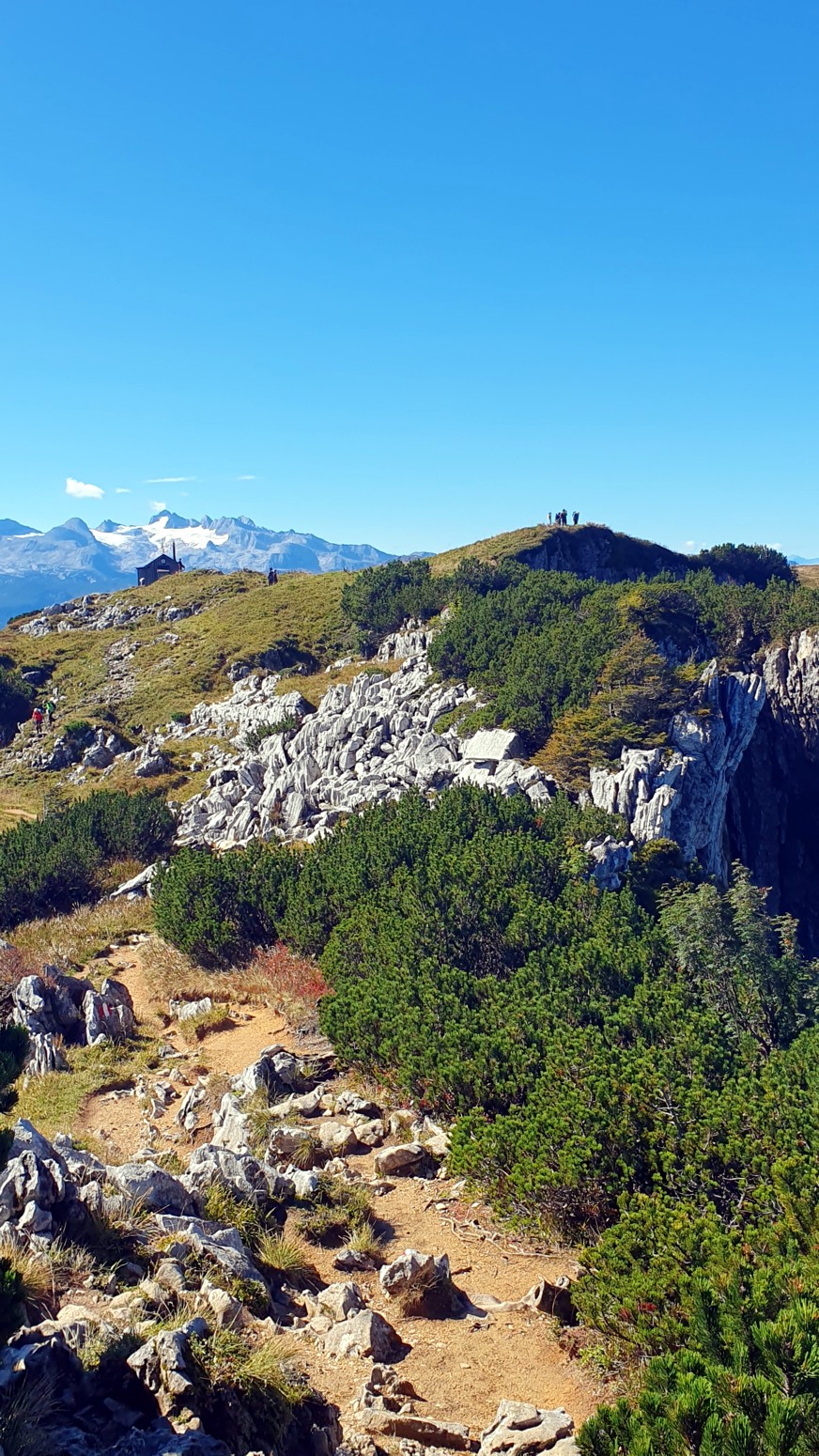 En medio de malas previsiones metereológicas para los próximos días, amanece un esplendido día de cielo azul, así que lo aprovecharemos para hacer montaña. La elegida es la cercana cumbre del "Loser" accesible tanto en invierno como en verano porque hay una cabina panorámica que te sube con comodidad a la estación de ski. Primero tengo que empezar diciendo que esa accesibilidad convierte al lugar en un paraíso ya sea para montañeros, esquiadores en temporada invernal, ciclistas, parapentistas, espeleólogos, vía ferratistas o turistas en general que disfrutaran de unas vistas inigualables hacia los glaciares del macizo de Dachstein. Nosotros una vez en la estación superior del moderno telecabina remontaremos por las pistas de ski hasta la llamada "Loser Fenster" o ventana del Loser que es una formación rocosa del tipo "puente de roca" muy peculiar y atractiva. Desde allí nos dirigiremos a la cima del Hochanger de 1837 metros de altura para luego ir a nuestro objetivo del día que es la cima del Loser de 1838m, para lo cual debemos descender desde la primera cima a un collado que hay entre las dos, y volver a remontar el desnivel. Luego de bajada hay la opción desde el collado de ir directamente abajo hasta la estación intermedia del telesilla. En un día esplendido como hoy, las vistas son increíbles y la verdad es que se disfruta mucho del día. Yo siempre digo que los remontes mecánicos son muy caros en los Alpes, pero compensan con creces en días de buen tiempo como este...